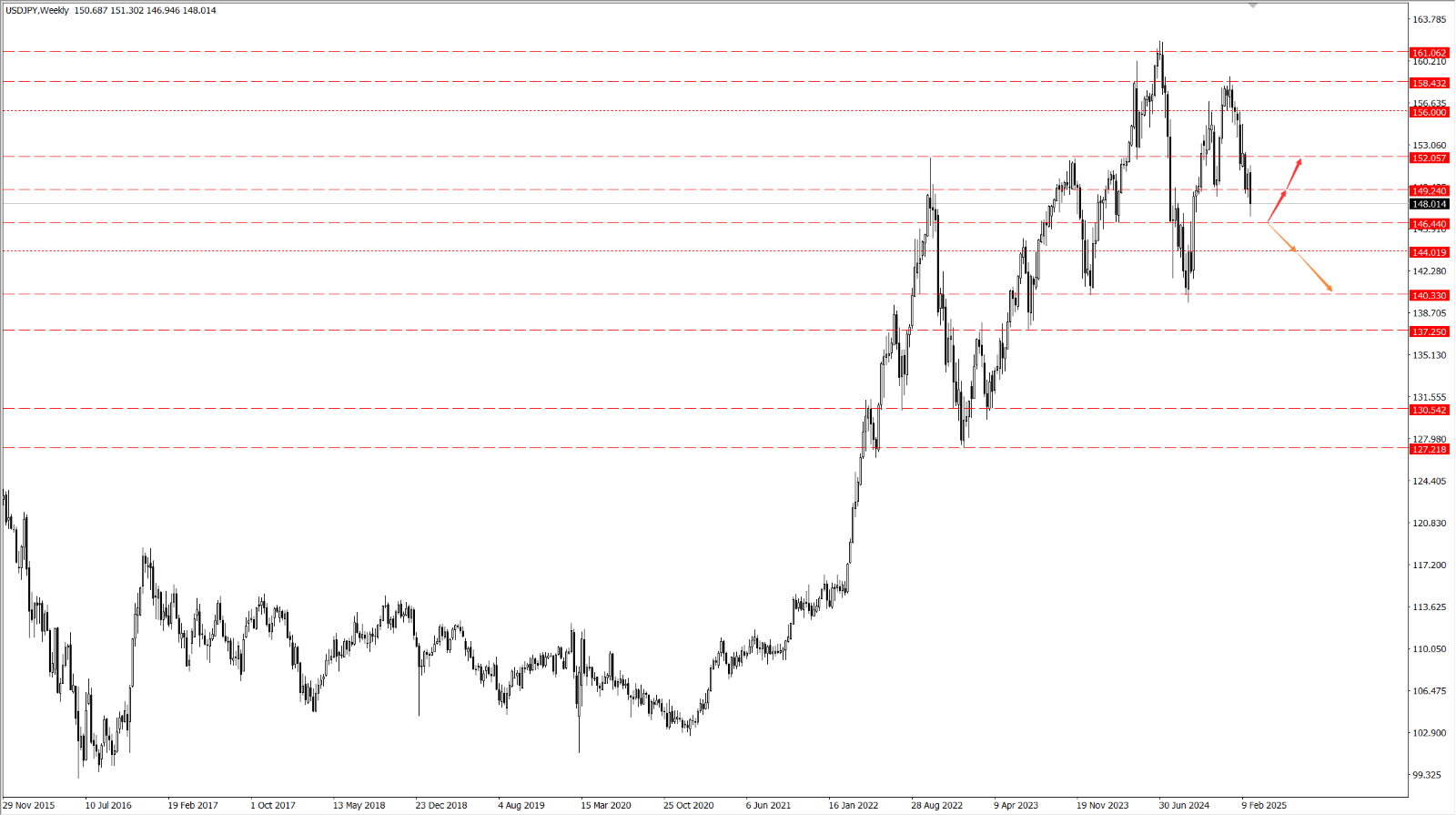 이번 주에는 146.44선이 중요한 변곡점이 될 전망입니다. 달러/엔이 146.44 부근에서 지지를 받고 반등할 경우, 추가 상승세를 주목해야 하며, 149.24 및 152.05 저항선에서의 압력을 살펴봐야 합니다. 반대로 146.44를 강하게 하락 돌파할 경우, 달러/엔의 추가 하락 가능성이 열리며, 144.01 및 140.33 지지선에서의 반응이 중요해질 것입니다.
