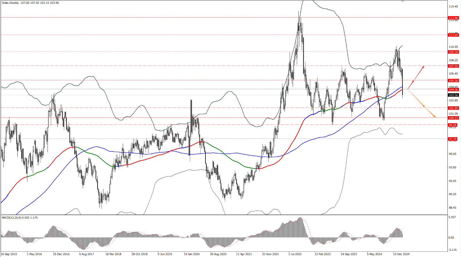 이번 주에는 104.36선에서의 움직임이 중요한 분기점이 될 전망입니다. 달러 지수가 104.36 아래에서 지속 하락할 경우, 101.85100.53선의 지지력을 주목해야 합니다. 반대로 104.36을 지지받고 반등해 상승세를 회복한다면 105.56107.50선에서의 저항 여부가 중요한 관전 포인트가 될 것입니다.