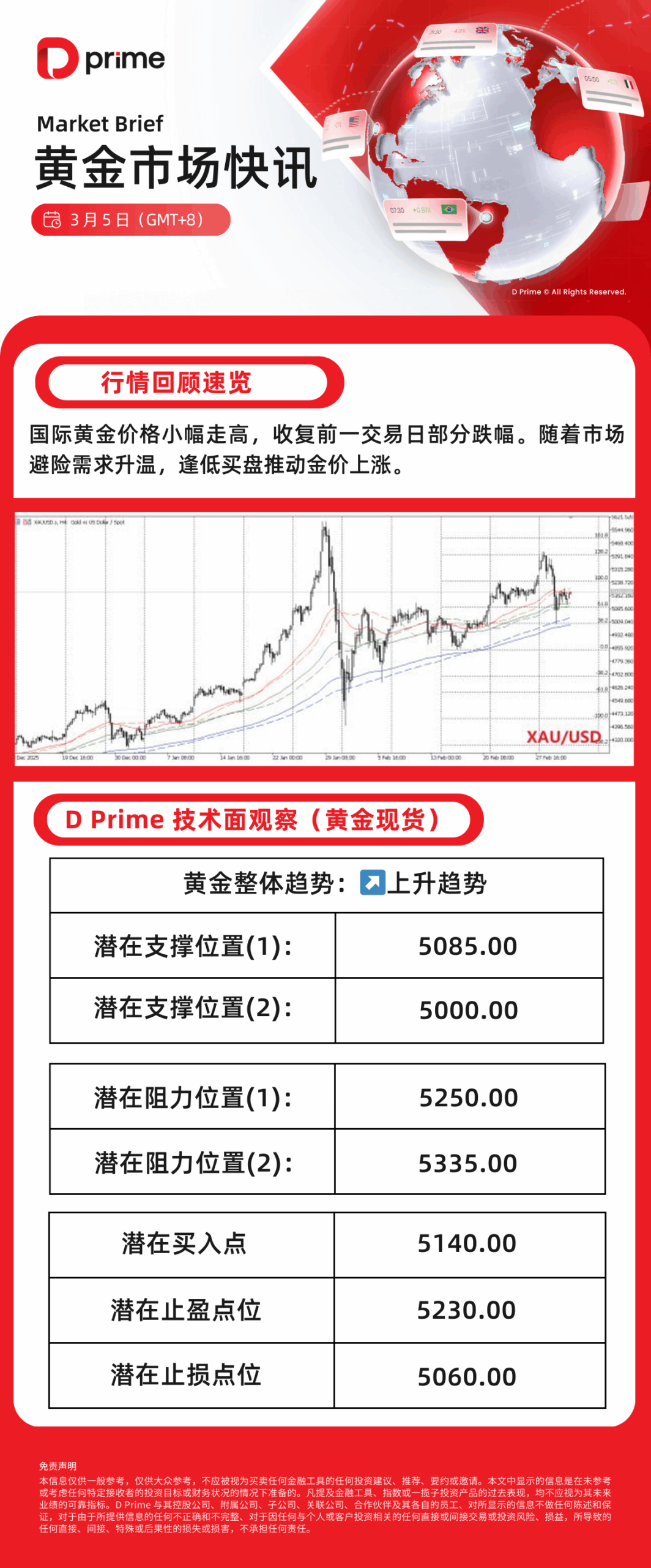 D Prime 黄金市场快讯 | 2026 年 3 月 5 日