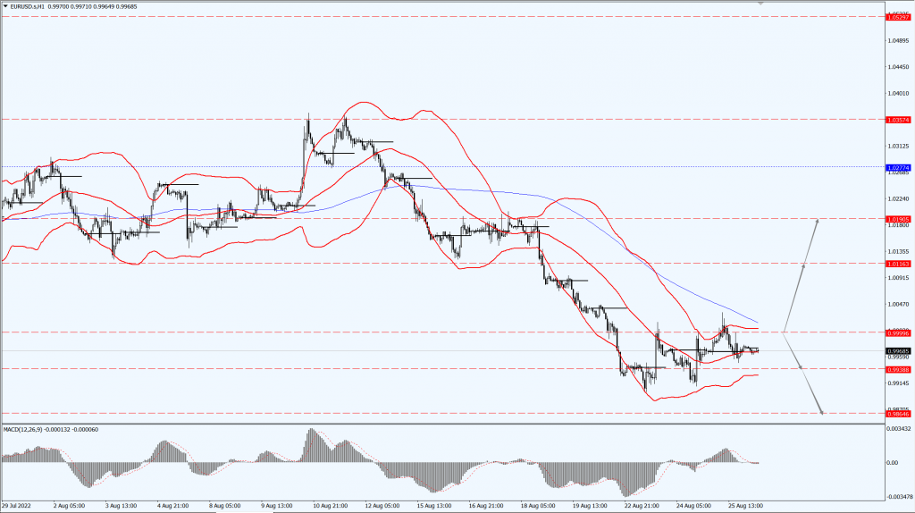 欧元兑美元当日持平于 0.9968,欧元隔夜短暂回升至平价上方,但在德国伊福经济研究所(Ifo)公布一项调查显示,德国 8 月企业信心降至 2020 年 6 月以来最低,因乌克兰战争带来高度不确定性,且担心第三季经济滑坡后,欧元回软。