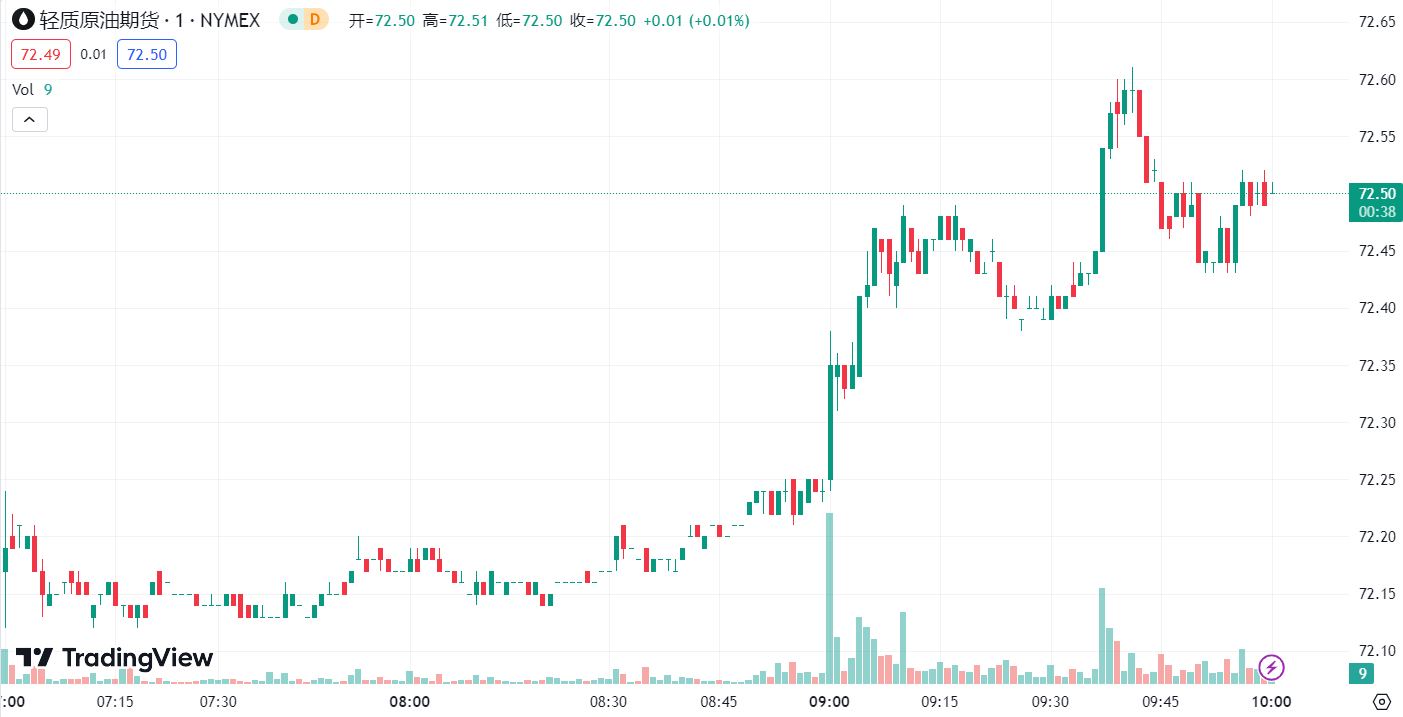 油价技术面企稳 70.5 关口迎来强势单边上涨回升,晚间欧美盘加速冲高突破并站上 72 关口延续多头强势反弹形态,最终美盘加速冲高刺破 72.9 一线承压回落二次下探至 71.4 关口反抽震荡收盘。