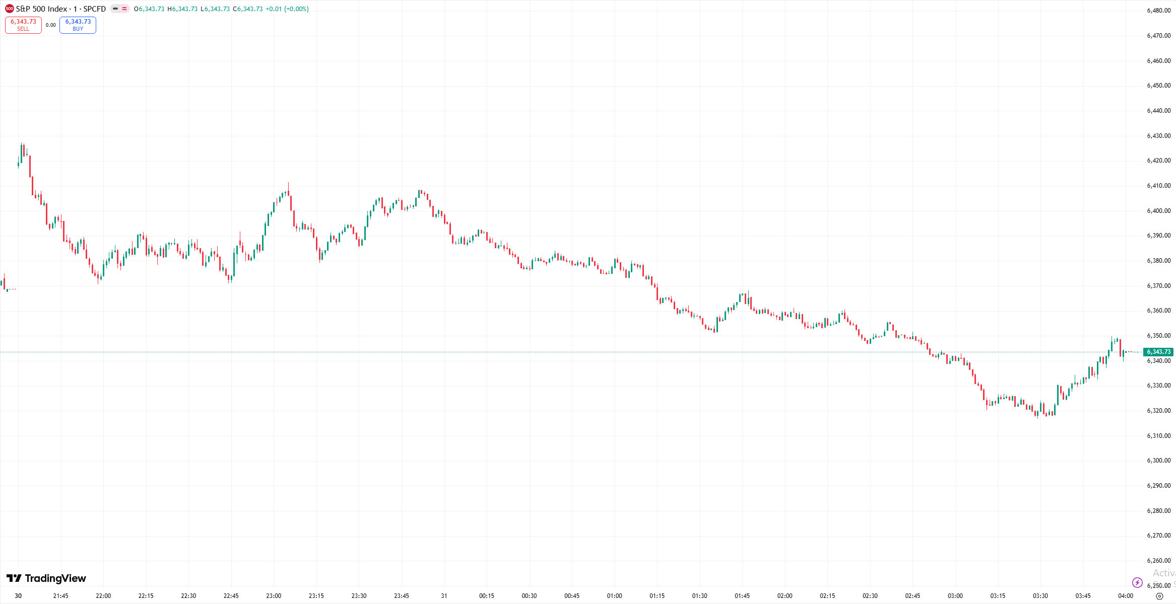 • 标普 500 指数跌 25.12 点,跌幅为 0.39%,报 6343.73 点