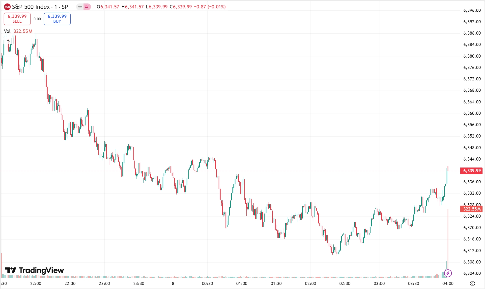 • 标普 500 指数跌 5.06 点,跌幅为 0.08%,报 6,340.00 点