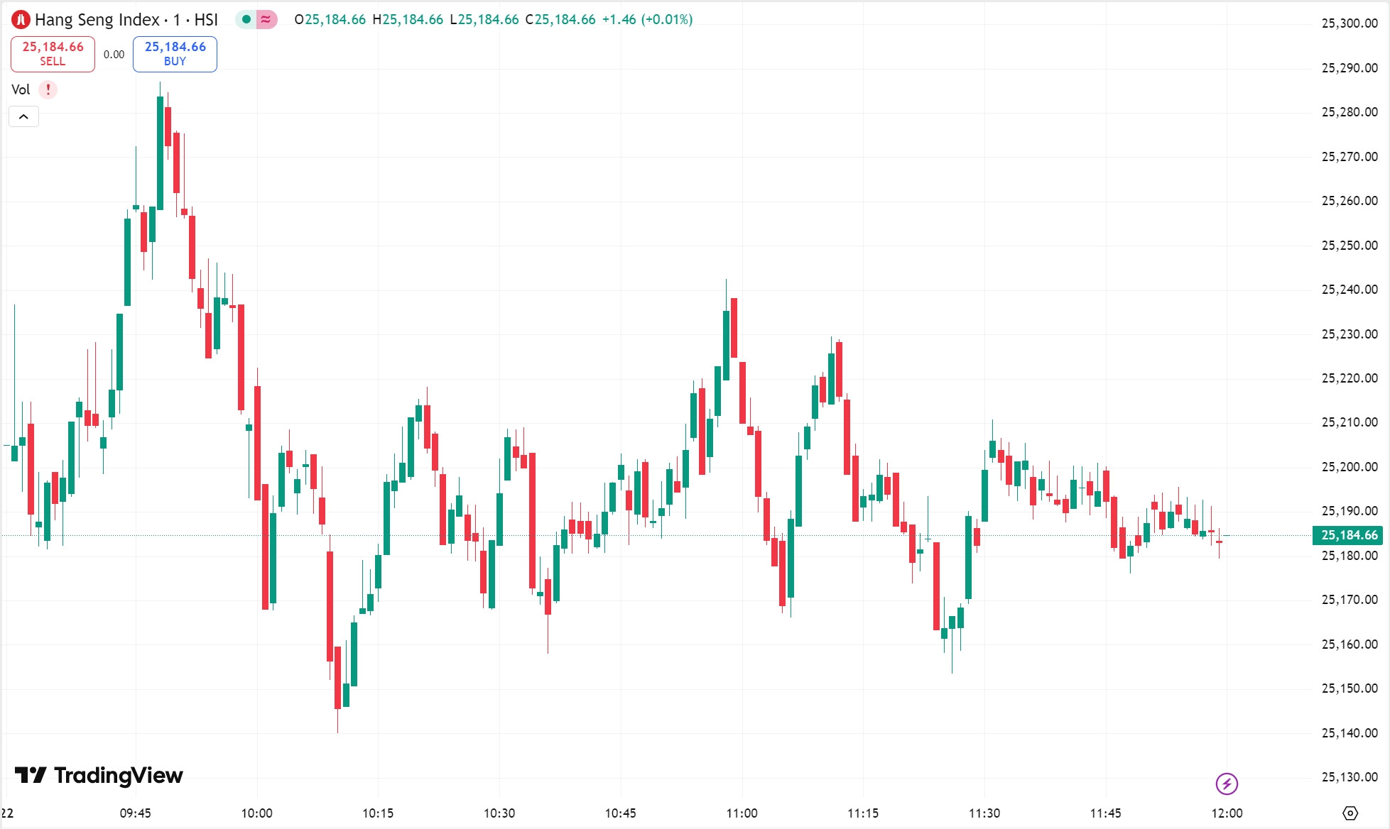 • 恒生指数涨 0.32%,收报 25,184.66 点