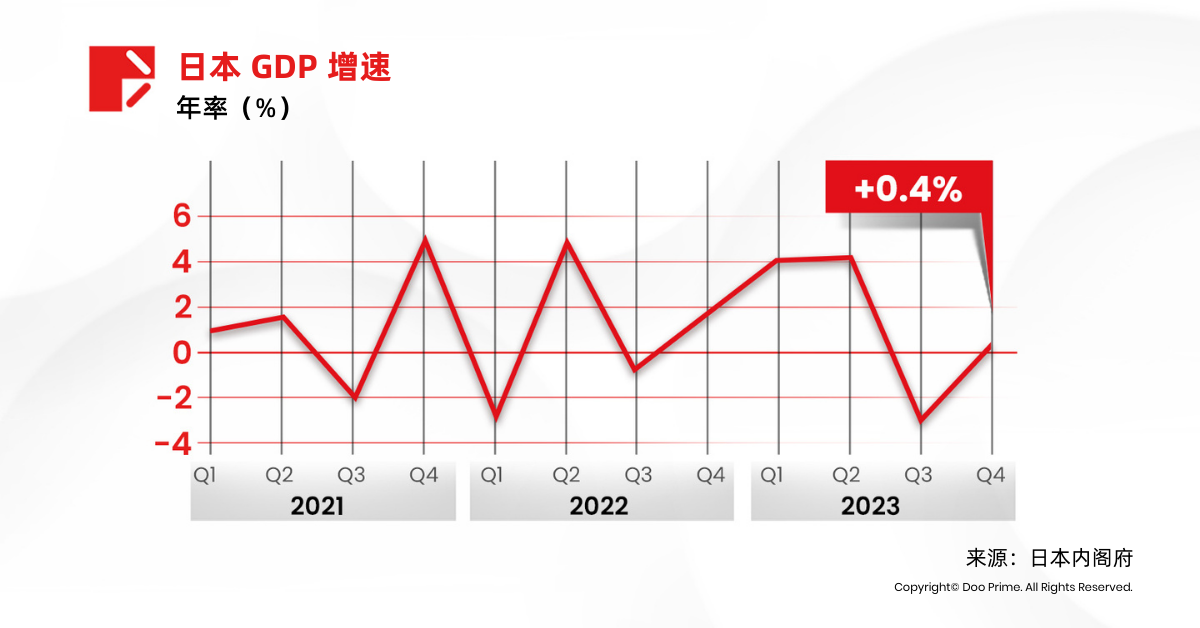 影响日元的重要经济指标之一是日本国内生产总值(GDP)。最近一个季度,日本 GDP 同比增长 0.4%,仍然相当低迷。