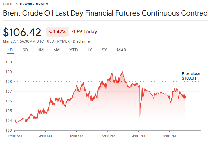 D Prime 行业动态 | 特朗普﹕延长对伊朗谈判最后期限至 4 月 6 日,油价突破每桶 108 美元