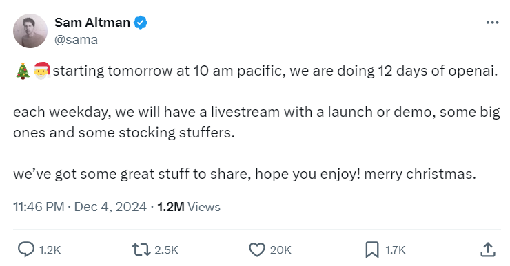 12 天 OpenAI 活动开跑, GPT-5 要来了?