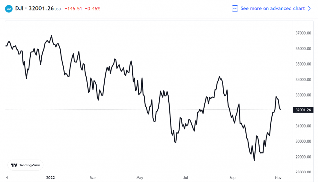 周四( 11 月 3 日)美股低开低收,三大指数连续第四个交易日收跌。截至收盘,道琼斯指数跌 0.46%,报 32,001.25 点;标普 500 指数跌 1.06%,报 3,719.89 点;纳斯达克综合指数跌 1.73%,报 10,342.94 点。