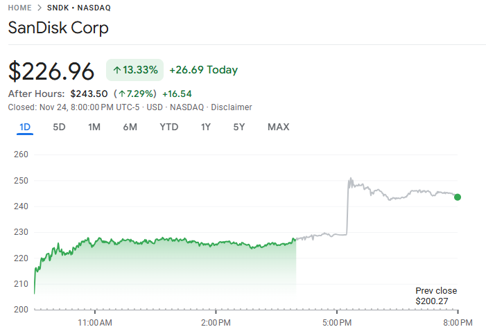 SanDisk 上市 9 个月正式纳入标普 500,股价累计飙升逾 5 倍