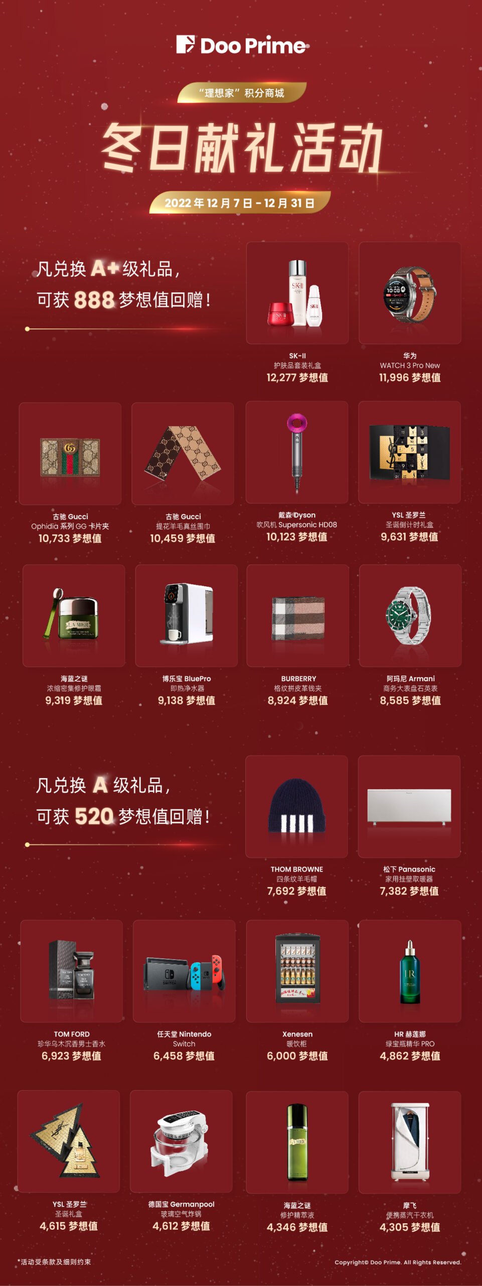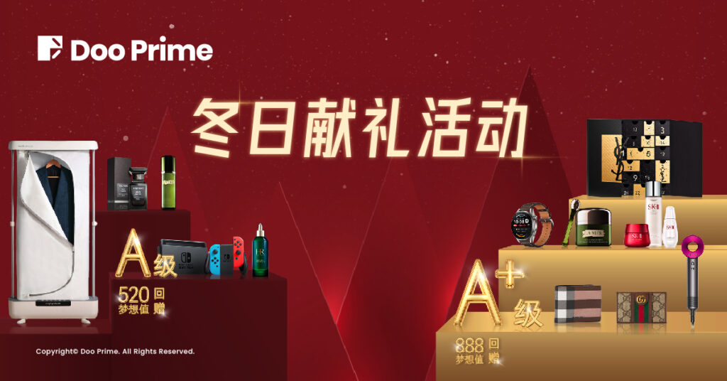 悄然间冬天已至,为了让广大客户在冬日里感受到来自 Doo Prime 的温暖问候,”理想家”积分商城现推出“冬日献礼梦想值回赠”活动,希望治愈您的冬日倦意,带给您冬日惊喜。