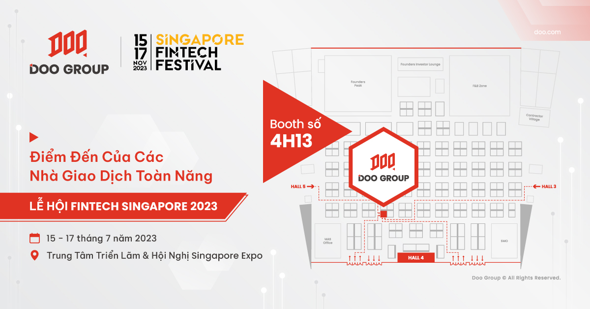 Phải nói rằng, chúng tôi vô cùng vinh dự vì được tham gia và tụ hội cùng các nhà môi giới uy tín khác tại Tuần Lễ FinTech Singapore 2023 sắp tới. Đây được xem là một trong những sự kiện FinTech quốc tế hướng tới việc thúc đẩy sự phát triển cơ sở hạ tầng tài chính, cũng như nâng tầm khả năng áp dụng nền công nghệ đổi mới trong ngành tài chính. Theo đó, từ ngày 15 đến ngày 17 tháng 11 năm 2023, Doo Group sẽ hiện diện tại Quầy 4H13, Trung Tâm Triển Lãm & Hội Nghị Singapore Expo để giới thiệu hệ thống sản phẩm và dịch vụ đa dạng của mình.