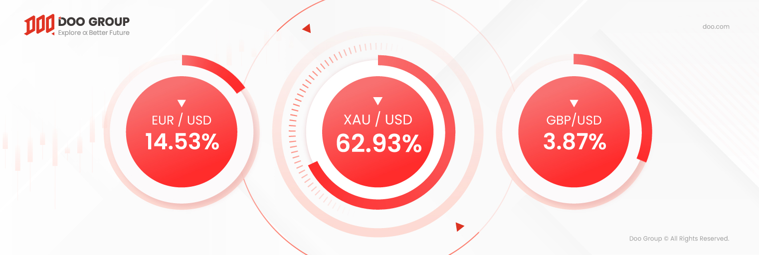 Cũng theo báo cáo, XAU/USD, EUR/USD và GBP/USD là những sự lựa chọn hàng đầu của nhà đầu tư, chiếm đến 81.33% tổng khối lượng giao dịch trong tháng 02. Trong đó, XAU/USD có khối lượng giao dịch hàng tháng cao nhất, ở mức 44.53 tỷ USD. Bên cạnh đó, EUR/USD và GBP/USD cũng đạt tổng khối lượng giao dịch hàng tháng ở mức 13.02 tỷ USD.