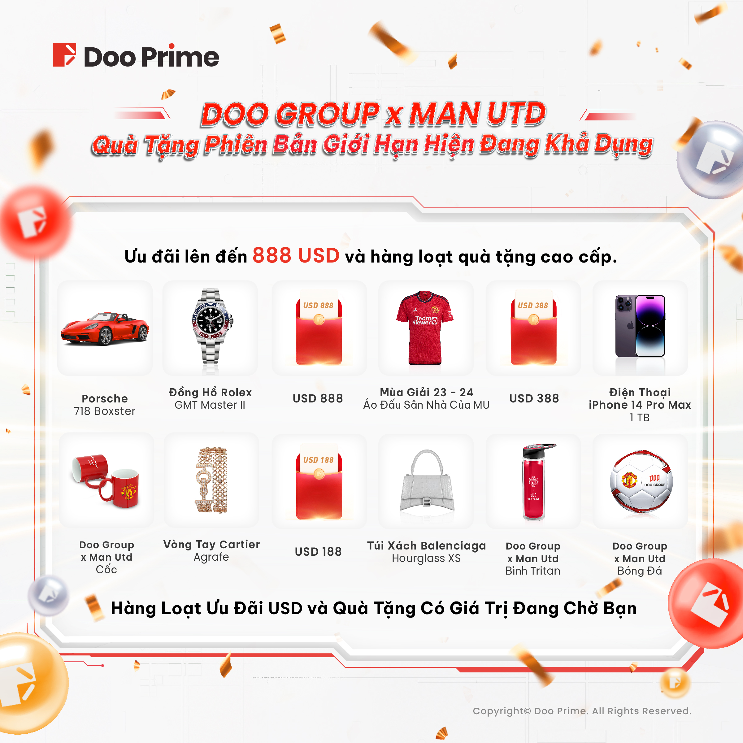 Nhằm mang đến trải nghiệm ưu việt cho quý khách hàng trên phạm vi toàn cầu, chúng tôi cam kết nâng cấp và đổi mới liên tục những hoạt động thương hiệu của mình. Một trong số đó là việc ra mắt loạt quà tặng đồng thương hiệu độc quyền từ Doo Group – tổng công ty của Doo Prime. Không chỉ là minh chứng “sống” cho mối quan hệ hợp tác bền chặt giữa chúng tôi và CLB bóng đá Manchester United, mà đây cũng là cách chúng tôi chào mừng mùa Giải Bóng đá Ngoại hạng Anh sắp tới. Thông qua đó, Doo Prime cũng muốn bày tỏ lời cảm ơn chân thành nhất đến tất cả quý khách hàng thân yêu – những người đã ủng hộ và tin tưởng chúng tôi trong suốt thời gian qua.