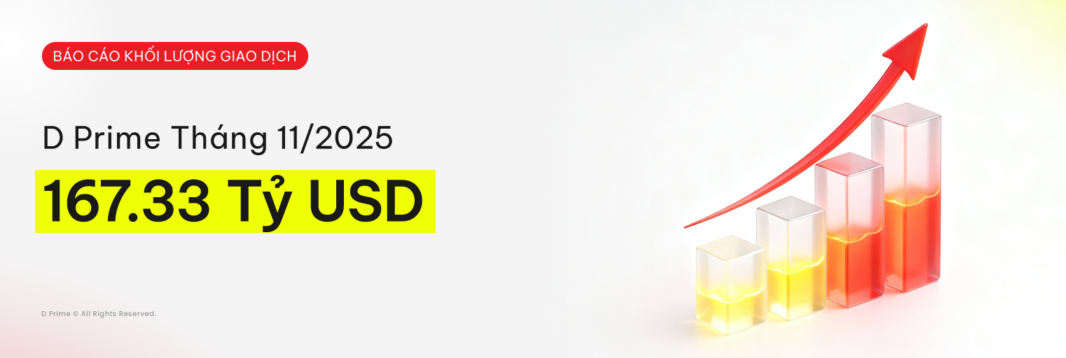 Giao dịch các sản phẩm đòn bẩy như Hợp đồng chênh lệch (CFD) tiềm ẩn rủi ro cao do sự biến động nhanh chóng và khó lường về giá trị và giá cả của các công cụ tài chính này và có thể không phù hợp với tất cả các nhà đầu tư. Bạn có thể chịu tổn thất đáng kể, bao gồm cả tổn thất vượt quá khoản đầu tư ban đầu của bạn trong một thời gian ngắn. Chúng tôi khuyến cáo bạn nên hiểu rõ bản chất và rủi ro vốn có của việc giao dịch với công cụ tài chính tương ứng trước khi bắt đầu giao dịch hoặc tham gia bất kỳ giao dịch nào với chúng tôi. Khi bạn tham gia giao dịch với chúng tôi, bạn thừa nhận rằng bạn đã biết và chấp nhận những rủi ro này. Bạn nên tự nghiên cứu và cân nhắc kỹ lưỡng mục tiêu đầu tư, trình độ kinh nghiệm và khả năng chấp nhận rủi ro của mình trước khi giao dịch, và tìm kiếm lời khuyên chuyên nghiệp độc lập trước khi đưa ra bất kỳ quyết định tài chính, giao dịch hoặc đầu tư nào. Tất cả các số liệu và thống kê được trích dẫn, bao gồm khối lượng giao dịch, chỉ số hiệu suất và xếp hạng sản phẩm, đều dựa trên dữ liệu nội bộ được tổng hợp bởi các đơn vị hoạt động dưới thương hiệu “D Prime” tính đến tháng 11 năm 2025. Thương hiệu “D Prime” bao gồm D Prime Vanuatu Limited, một công ty được thành lập và quản lý bởi Ủy ban Dịch vụ Tài chính Vanuatu (VFSC).